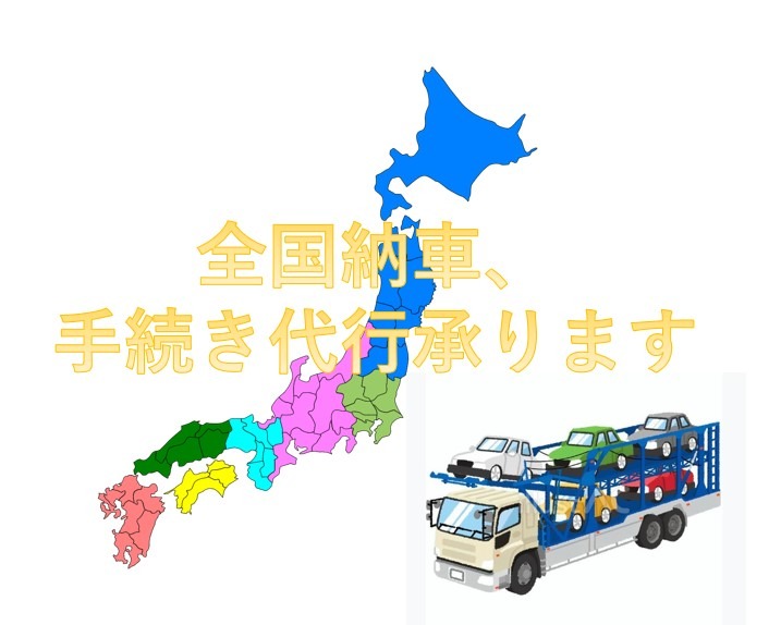 全国離島以外は、お車の納車、名義変更手続き代行致しますお気軽にお問い合わせください。お見積もり無料